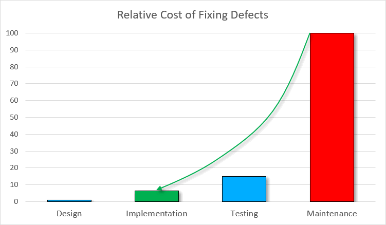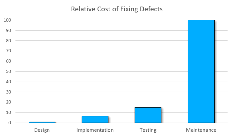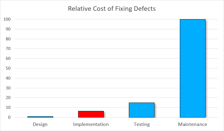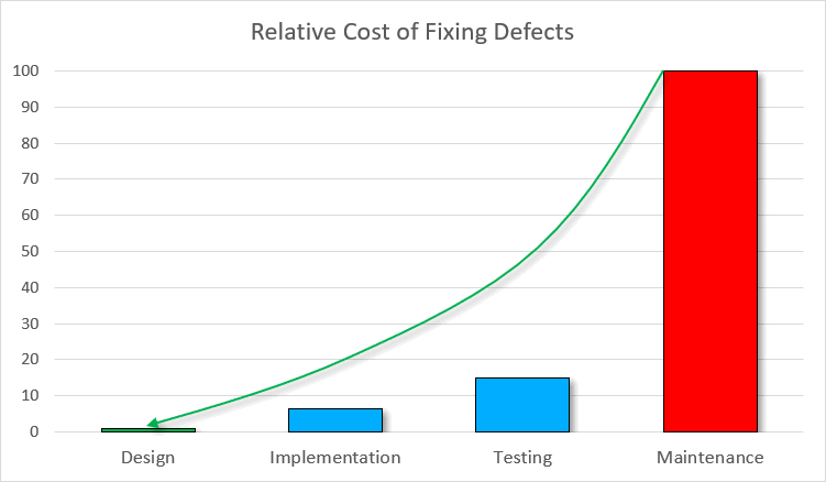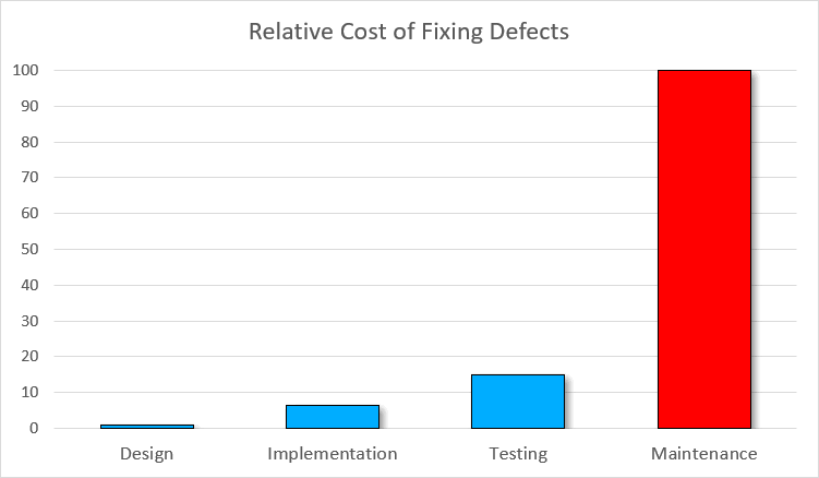 Here's what IBM System Science Institute reports about the relative cost of fixing the vulnerability: