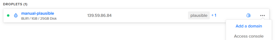 Moving to our digital ocean control panel we can choose the Add a domain option from the dropdown