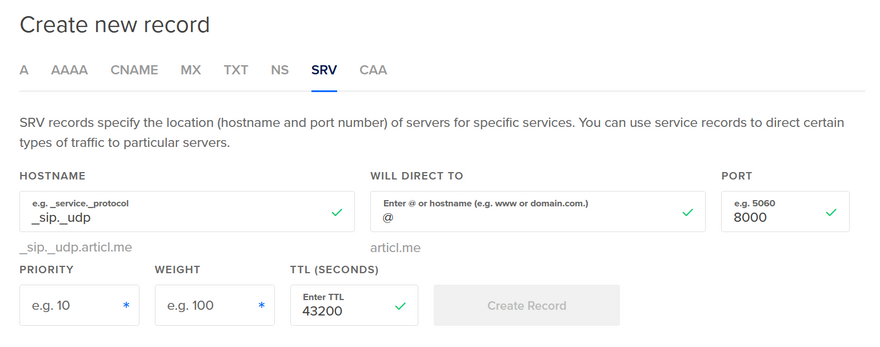 Add your domain name in the text area then click the button to create a new record.