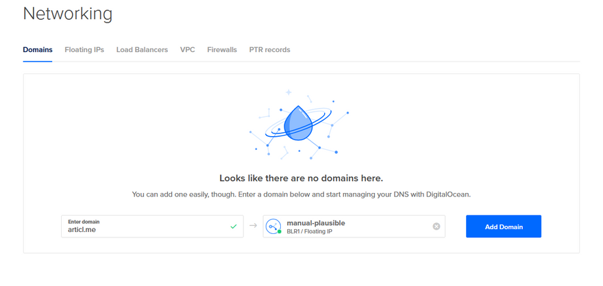 Save the settings and wait for a minute or so for DigitalOcean to identify your DNS.