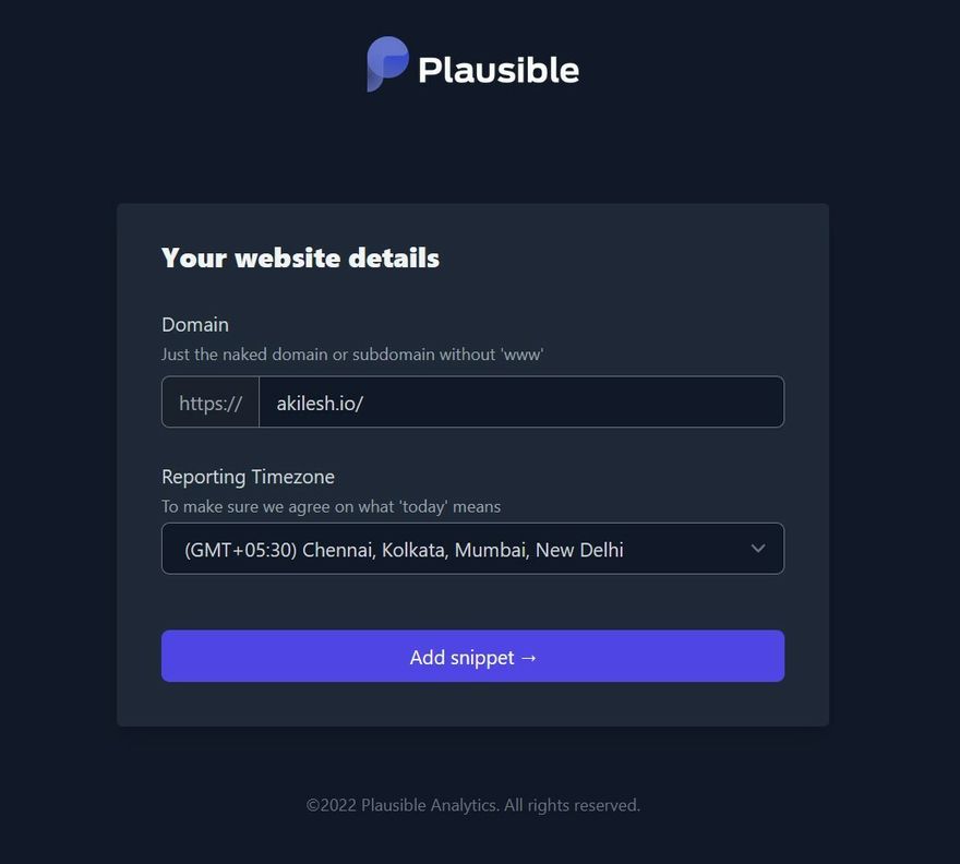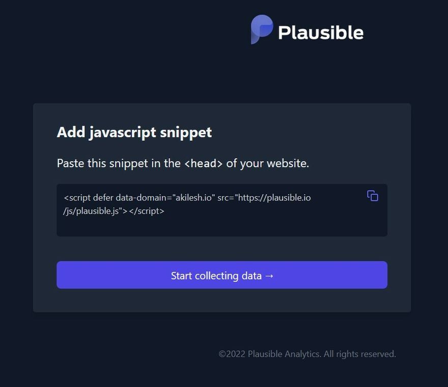 Go to your domain dashboard https://plausible.io/**your_domain_name** and stay relaxed. Plausible will handle all the complicated process and in a few seconds you will see your webpage's stats.
