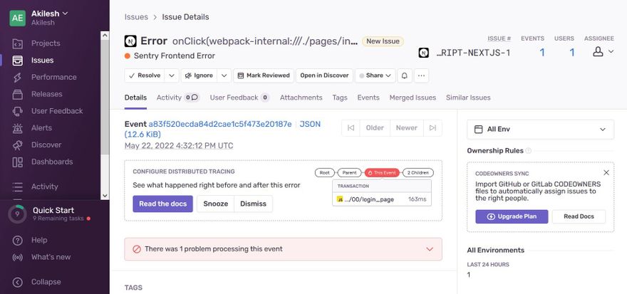 In this blog we will see how to integrate sentry into an existing next.js application.
