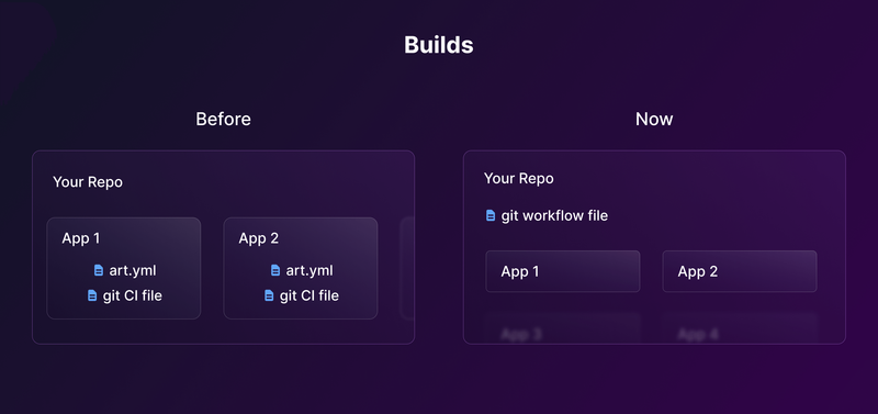 The Argonaut Bot on your Git repo had to install several workflow files on your Git repo to make it function. Small manual changes to these files could cause issues, and we even had to develop a three-way merge feature to fix such issues. This was a messy implementation, and many of our customers also requested a better way to do this.