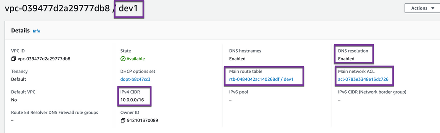 Within the VPC is where you can see things like the CIDR range, route tables, Access Control Lists (ACL), and DNS settings.