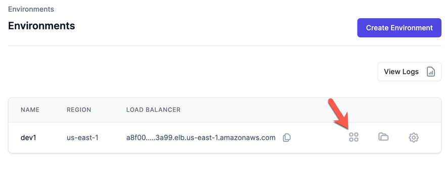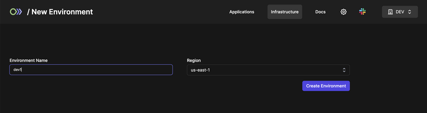 First, log in and click the Infrastructure tab. Then click the purple Create Environment button.