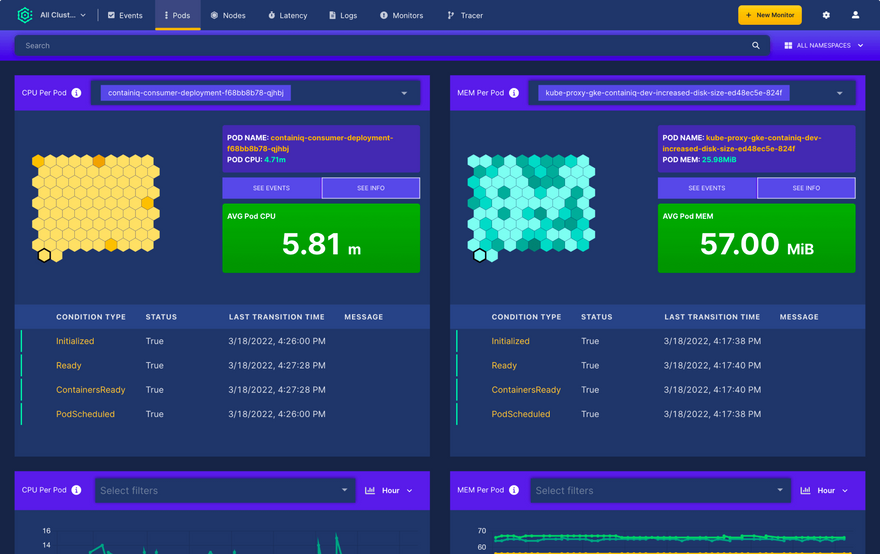 Kubernetes monitoring is made easy with out-of-the-box dashboards, health metrics, event & log tracking, and request tracing. Containiq’s solution offers these great features at an affordable price and a transparent model that scales based on your usage. Their power plan starts at $20/node/mo and can support up to 500 nodes with 14-day log retention. They also offer a 14-day free trial.