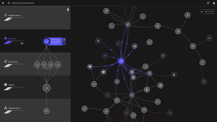 Named as the Leader in Gartner’s 2022 Magic Quadrant for APM and Observability, Dynatrace’s end-to-end observability solution is robust. It integrates seamlessly with all major cloud providers and supports 600+ technologies. Its ability to be a software intelligence platform and align business, development and infra teams makes it unique.