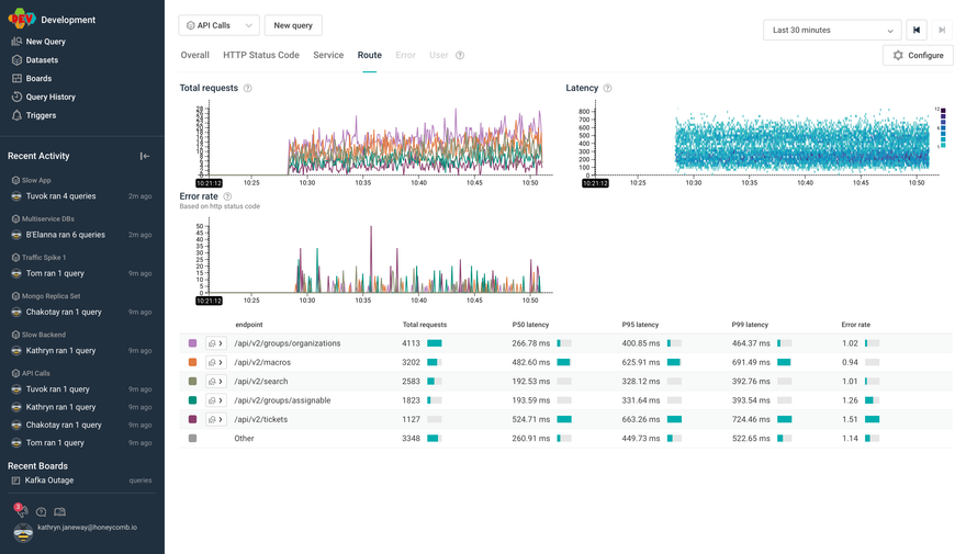Honeycomb takes a whole new approach to providing high reliability by focusing on Service Level Objectives (SLOs). They offer a purpose-built data store where you can ingest data from OpenTelemetry or other preferred standards.