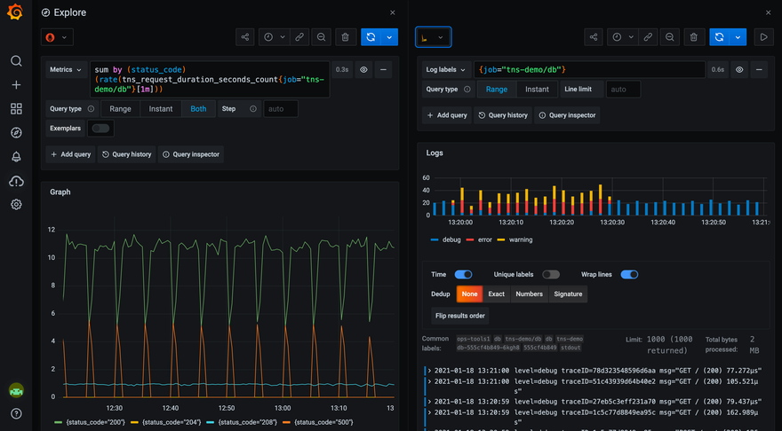 Grafana, a popular open-source analytical and visualization web layer, now provides an entire observability stack through Grafana Cloud. Their in-house tools, such as Loki for logs, Prometheus for metrics, Tempo for trace, and generous free tier, make the product an excellent value for anyone getting started with observability.
