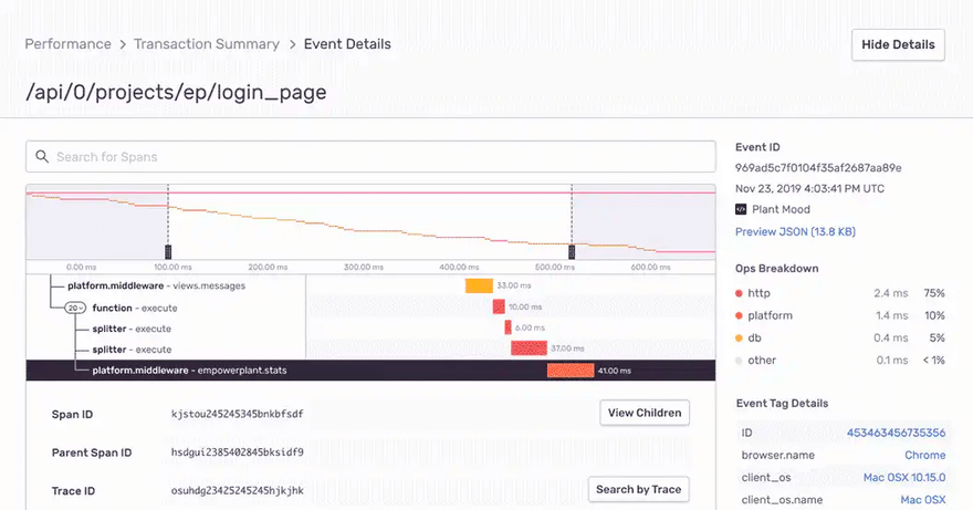 Sentry is an error tracking software that provides a full stack view into your application and infrastructure’s performance. It makes it very easy to track and debug errors. It provides observability into both front-end and back-end projects.