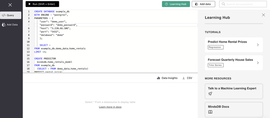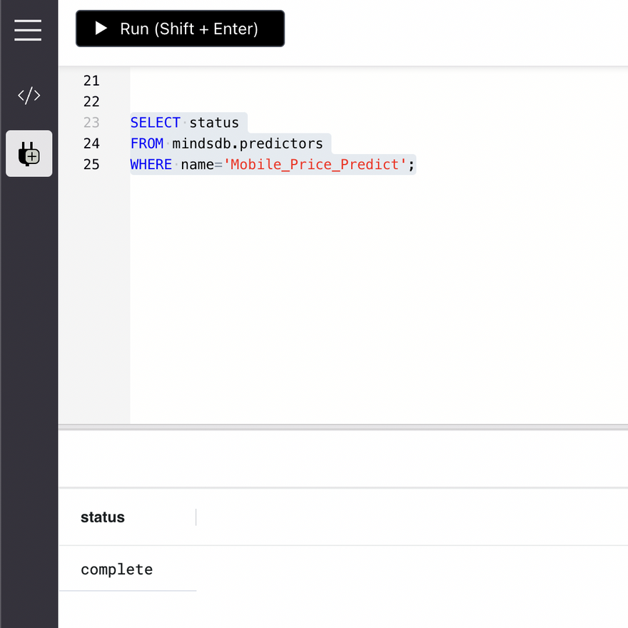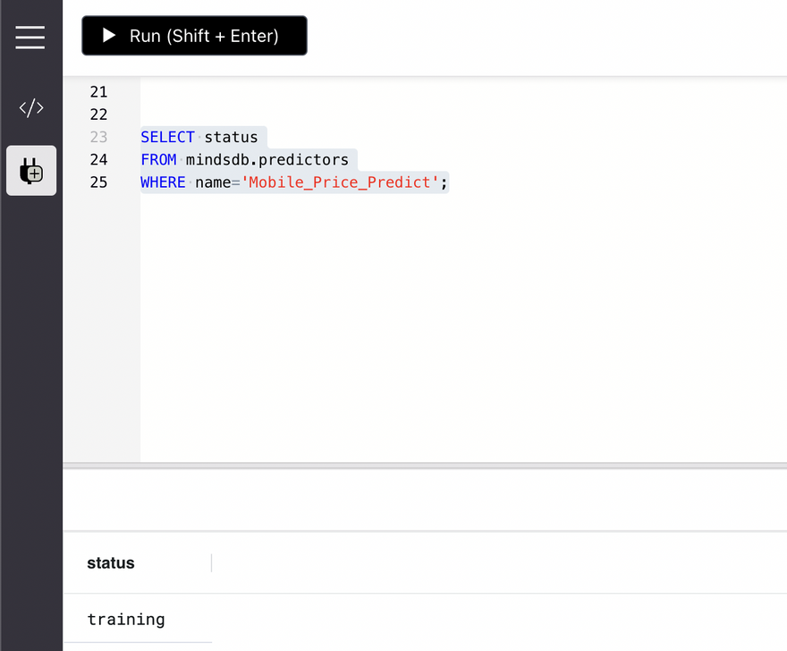 MindsDB makes it extremely easy to define a Predictor model and train it by using a simple SQL syntax.
