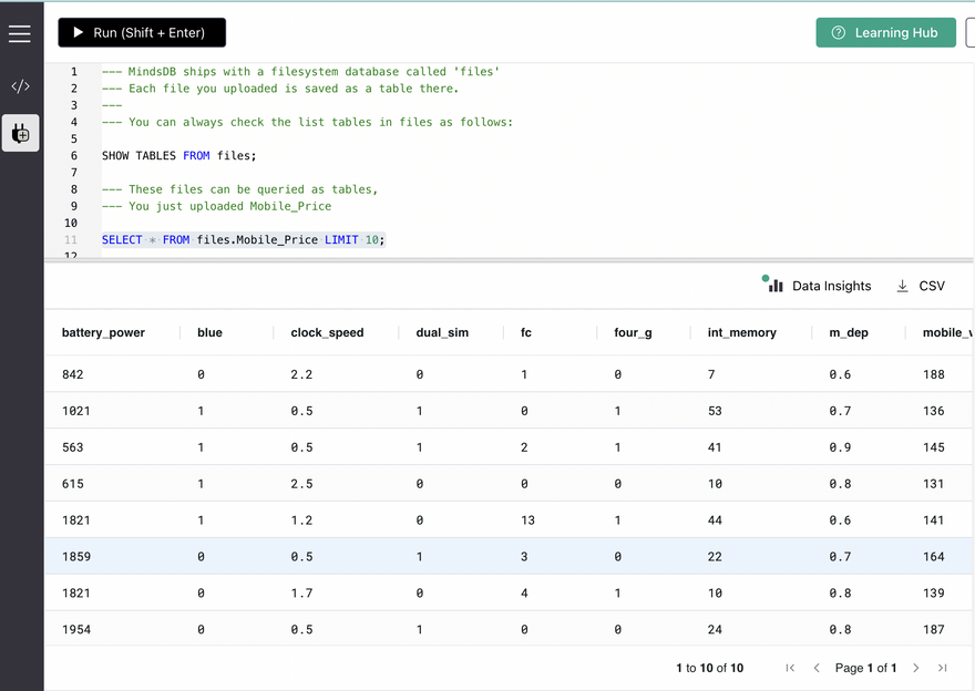 It's time to wrap up the tutorial. As part of this tutorial, we created a MindsDB Cloud account, uploaded a dataset to the cloud interface, trained a predictor model with the dataset, and predicted the Mobile price range.