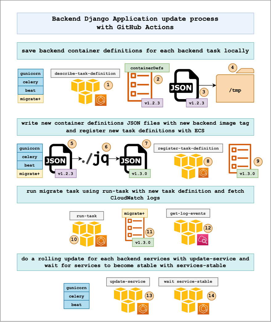 The script used for updating the backend application could be improved or broken up into multiple scripts to better handle errors and failures that happen during the pipeline. The script runs several different commands and could potentially fail at any step, so it would be nice to improve the error messages so that both developers and DevOps teams can more quickly diagnose pipeline failures.