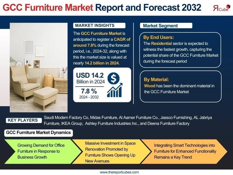 The GCC furniture market is evolving rapidly as urban living standards improve and real estate development expands across the region. Furniture has become an essential part of modern lifestyles, combining comfort with visual appeal. Today, consumers are not only focused on functionality but also on design, quality, and innovation. According to The Report Cube recent market study report, the furniture GCC market size was valued at around USD 14.2 billion in 2024 and is expected to grow at a CAGR of 7.8% through 2032. This steady expansion is supported by housing demand, infrastructure projects, and the increasing influence of smart living trends.