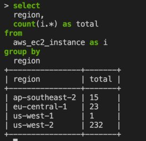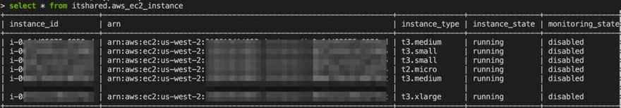 If you have an aggregator configuration setup, you will get results for all configured AWS accounts by default. If you want to limit your scope to a specific AWS Account, simply prefix the table name with the connection name e.g. select * from itshared.aws_ec2_instance: