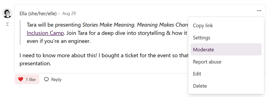 - Flag to Admins (🧐): a quick way to flag content that violates the Code of Conduct or Terms so the admin team is notified and can take action.