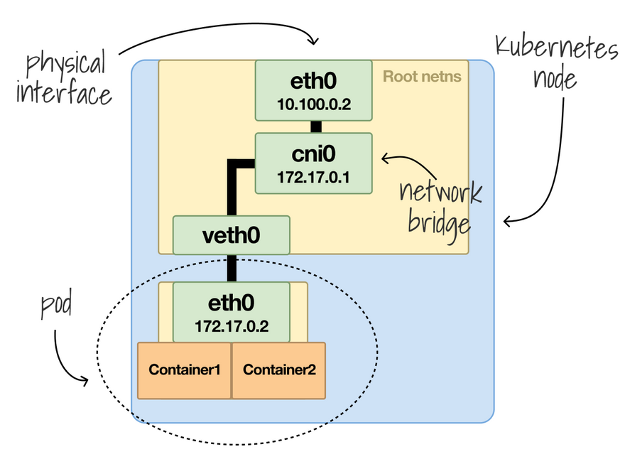 The network is shared, and a single IP address is assigned to all containers in a Pod (Pod's IP address).