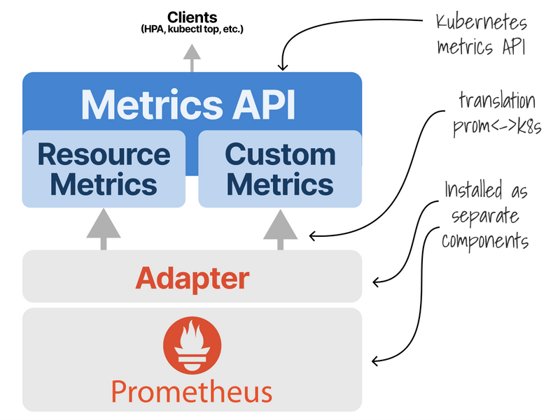 From there, they are consumed by the Horizontal Pod Autoscaler.