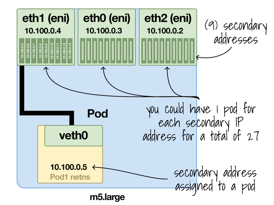 For example, an m5.large can have up to 10 IPs for ENI.