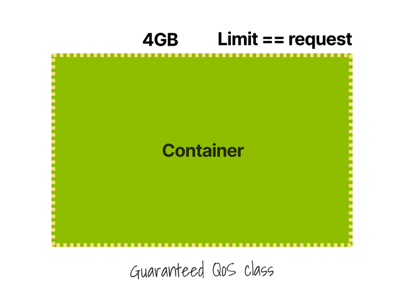 Also, memory request = memory limit AND CPU request = CPU limit.