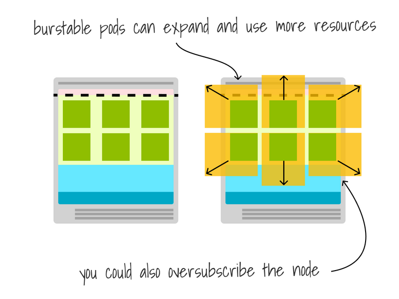 This allows the Pods to flexibly increase their resources if available (but they could also use any amount of resources).