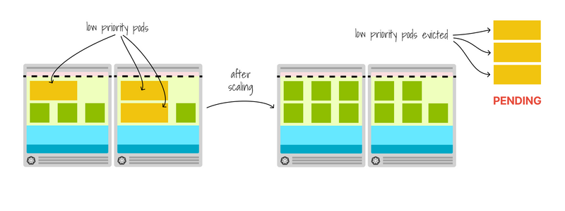 The scheduler also leverages the Pod PriorityClass to evict pods when the cluster is full.