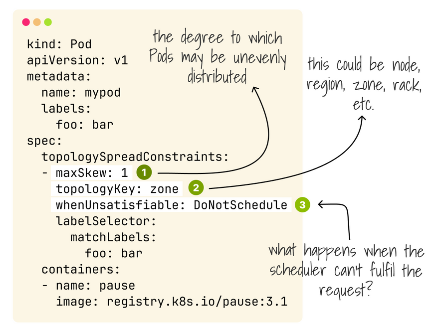 Alternatively, you can use topology spread constraints to control how Pods are spread across your cluster among failure domains such as regions, zones, nodes, etc.