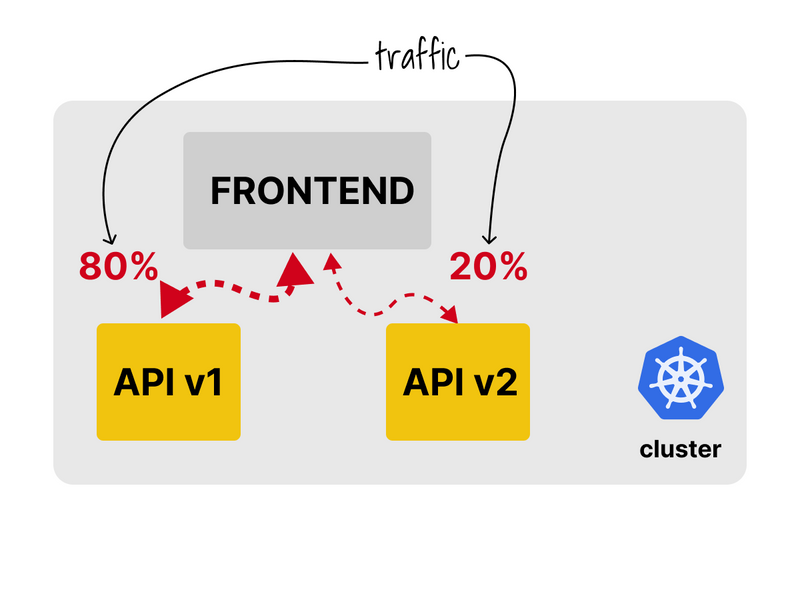 Ideally, the frontend should consume 80% of requests from v1 and only 20% from v2.