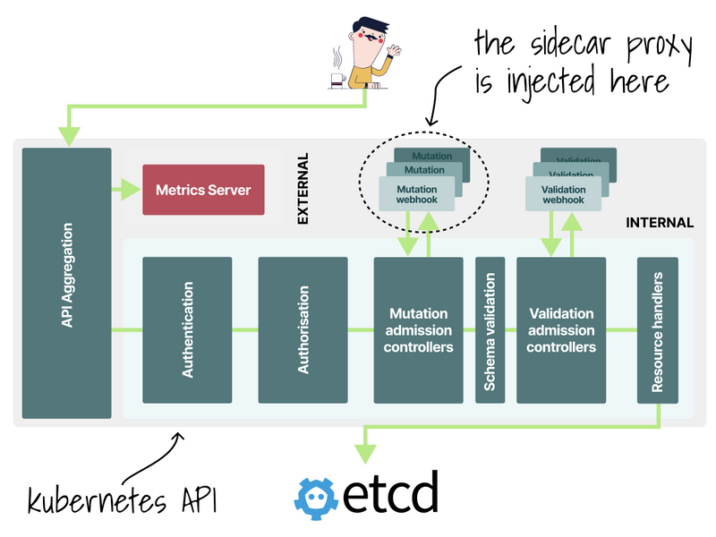 The proxy is automatically injected using a mutating webhook.