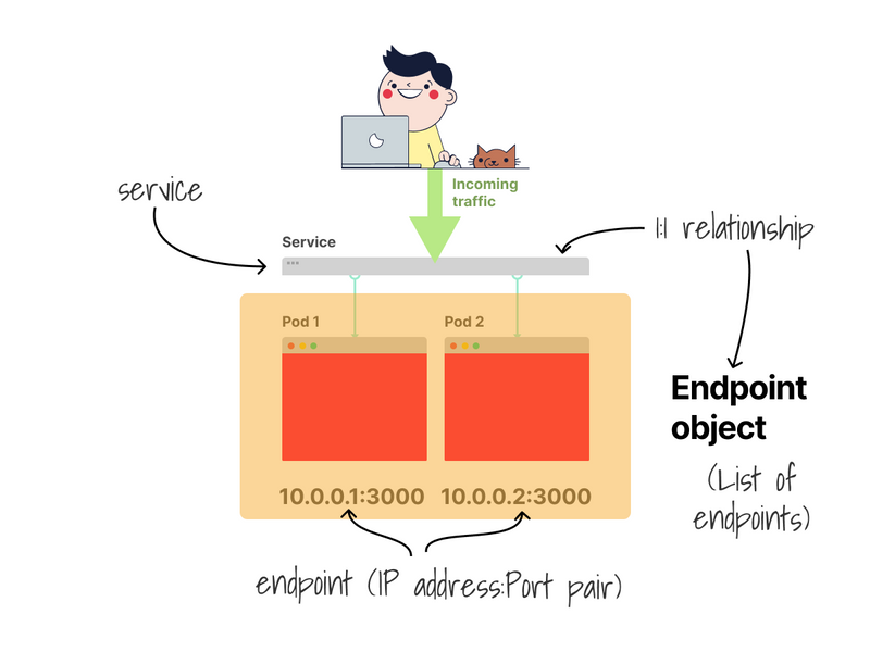 For every Service in the cluster, Kubernetes creates an Endpoint object with endpoints.