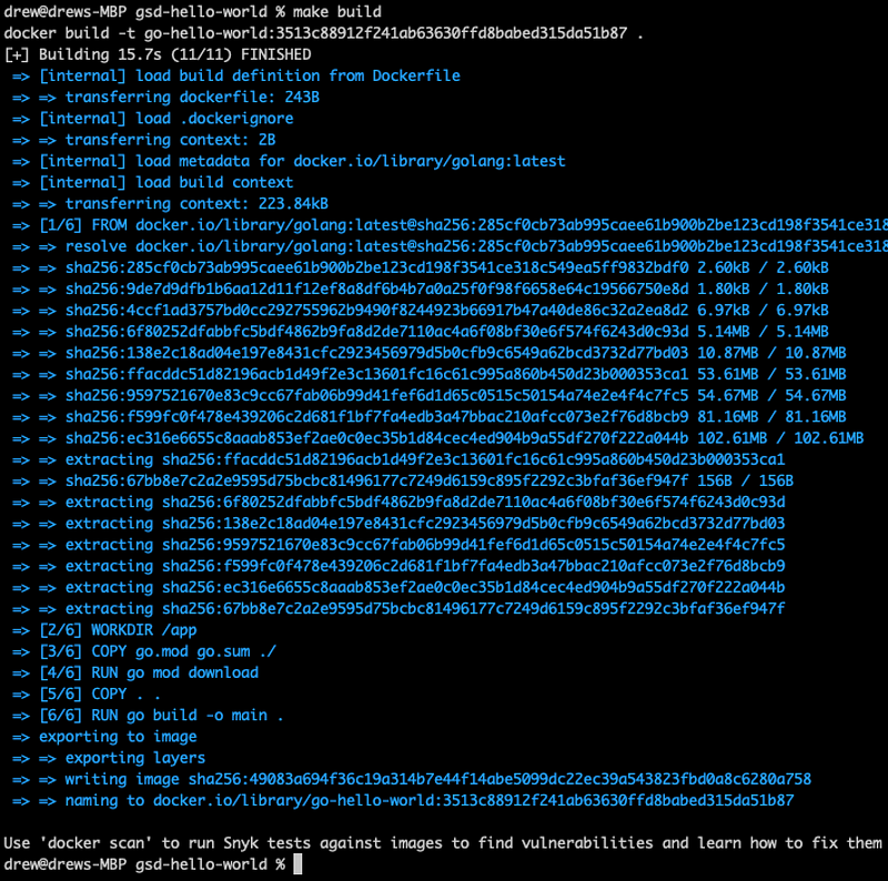 - We need to get you a better Internet connection (most of the 30 seconds for me is spent downloading the initial Golang image on an empty docker cache)