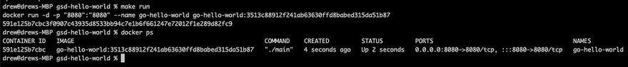 That’s it, you’re running the GSD HelloWorld application written in Golang and containerized so that it can quickly be deployed in Docker.