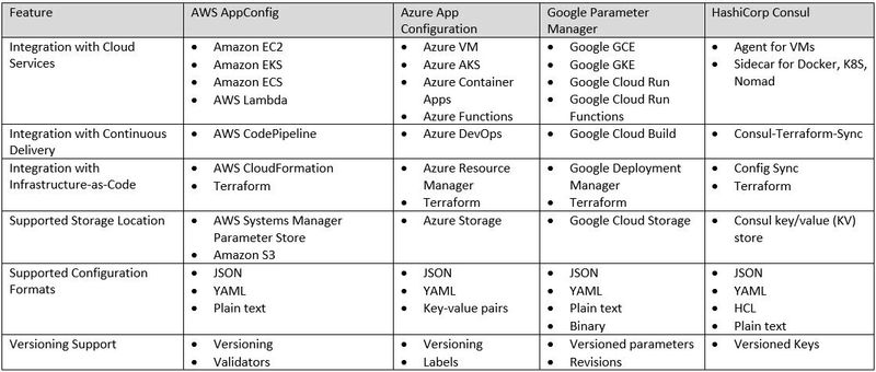 In this blog post, I will compare some of the most common features of managed configuration services, offered by the hyper-scale cloud providers, and a cloud-agnostic solution.