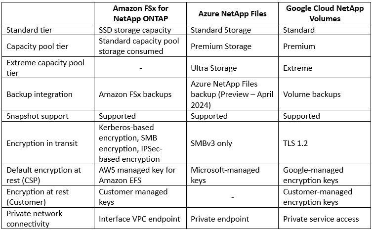 Comparison between managed NetApp File storage alternatives: