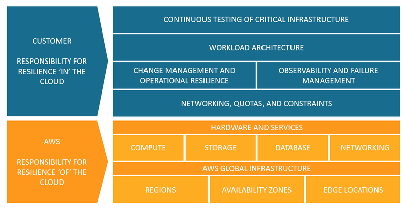 As an example, here is AWS’s point of view regarding the shared responsibility model, in the context of resiliency: