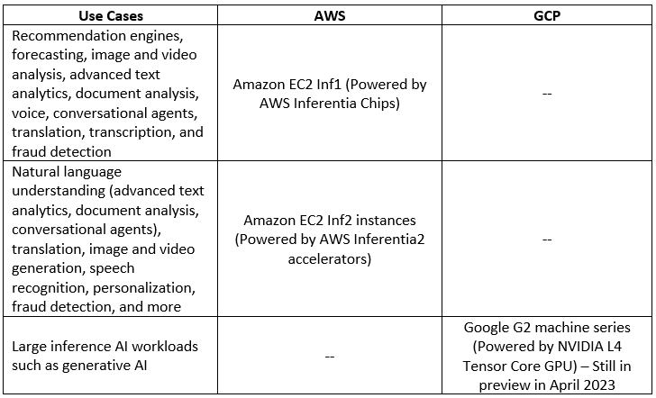 Below is a comparison table for the various processors available in the public cloud, dedicated to the deep learning inference phase:
