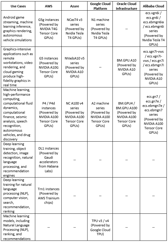Below is a comparison table for the various processors available in the public cloud, dedicated to the deep learning training phase: