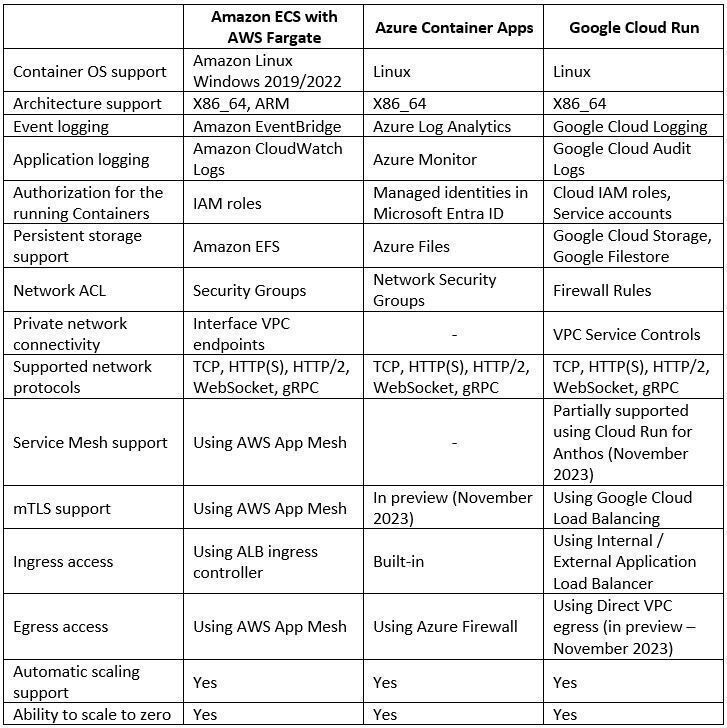 Comparison of Serverless Container Services