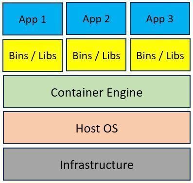 Container architecture is made of a Container engine (such as Docker, CRI-O, etc.) deployed on top of a physical or virtual server, and on top of the Container engine, we deploy multiple Container images for our applications.