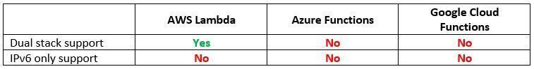 - AWS Lambda now supports Internet Protocol Version 6 (IPv6) endpoints for inbound connections https://aws.amazon.com/about-aws/whats-new/2021/12/aws-lambda-ipv6-endpoints-inbound-connections