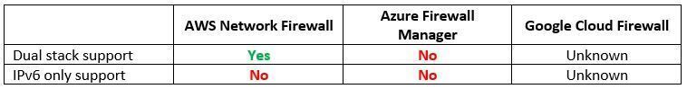 - AWS Network Firewall announces IPv6 support https://aws.amazon.com/about-aws/whats-new/2023/01/aws-network-firewall-ipv6-support