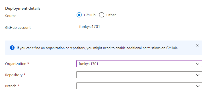 When you create a Static Web App on Azure you get asked for the github repo of your source code and even the branch to use.