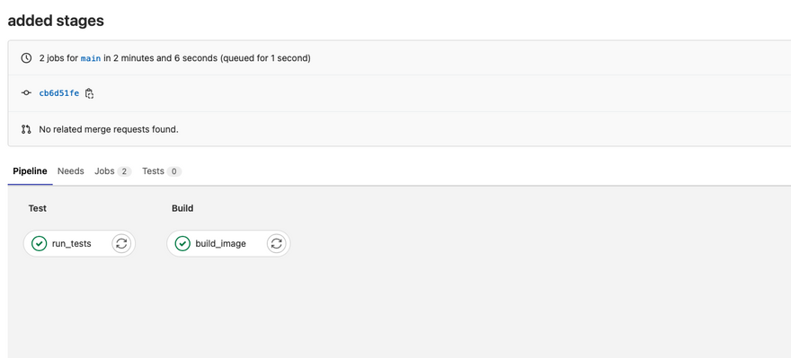 Till this moment whenever we push both run_tests and build_image jobs run in a parallel fashion. In most of the cases, you want sequential execution of jobs which means if running tests cases job is successful then only build the docker image.