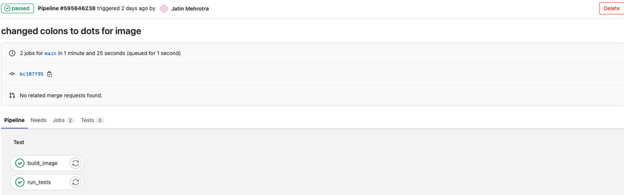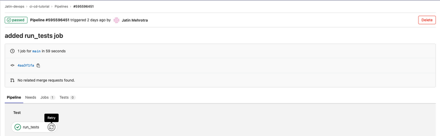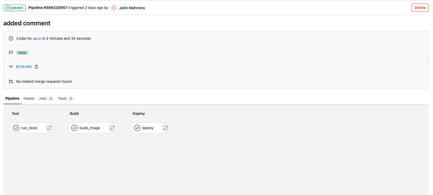 - Commit your changes and push them to the remote repository, GitLab will automatically trigger the pipeline to be executed. ( quite an ease )