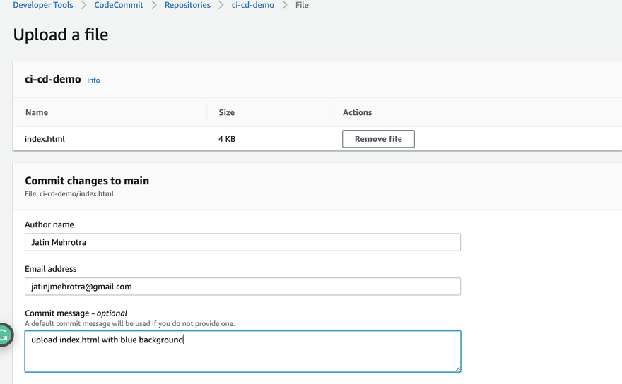 - Create a code commit repository and upload index.html file present in this repository