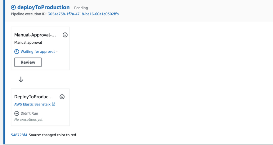 Once manual approval is added, edit the code in code commit and change the colour to red.