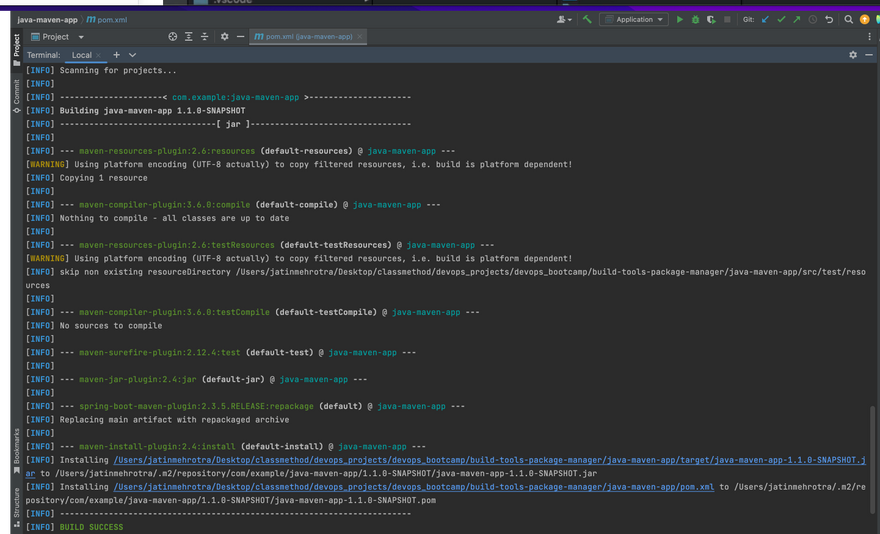 - To build, you can write the commands in the integrated terminal of IntelliJ.