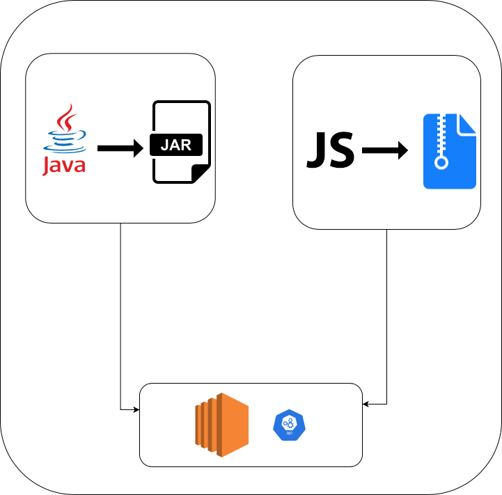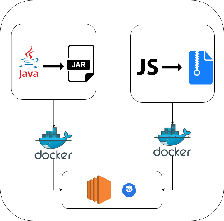 Note - we don't have to create zip or tar files anymore because we can copy JS files into a docker image. But we still need to build apps outside the docker image and then copy it inside the docker image. For eg webpack or in the case of JAVA create a JAR file , then copy JAR file or bundle.js will create a docker image.