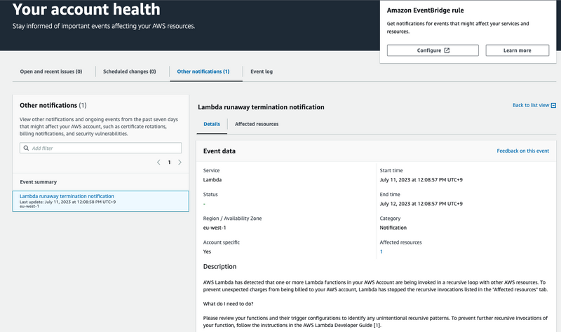 RecursiveInvocationsDroppedmetric. We can always set an alarm if this metric count is more than 0.- I haven't set up alarms personally for this test, so feel free to post about this in the comments. Would love to hear.