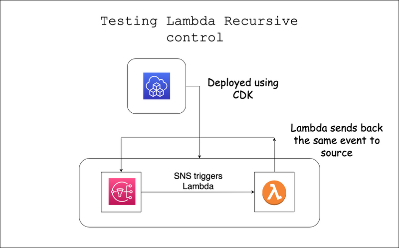 - To test this feature we will be setting up sns topic, lambda (which publish message back to source sns topic) this creates a recursive loop.